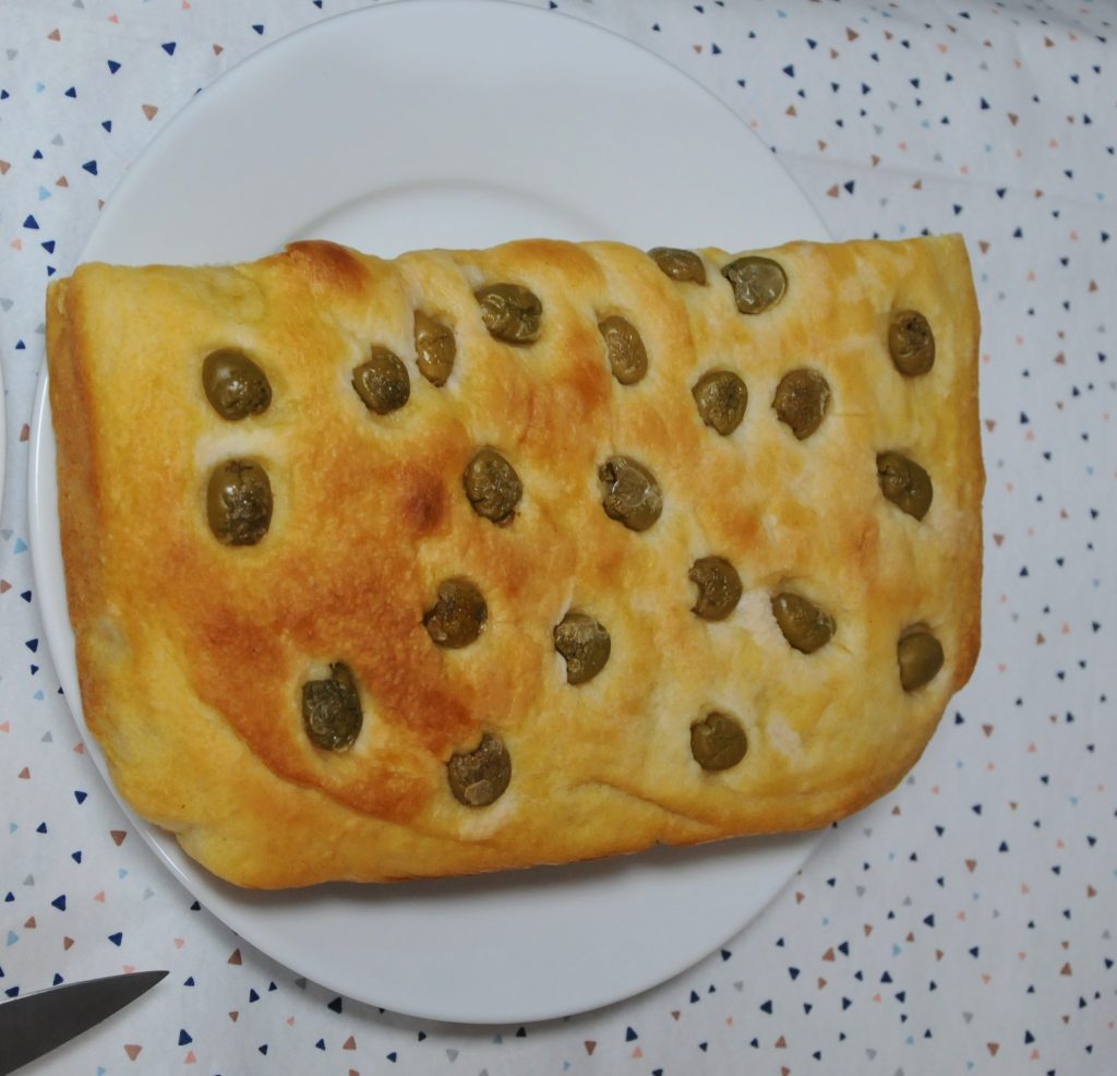 - Bake for 20 mins until golden. Whilst the bread is still hot, drizzle over 1-2 tbsp olive oil. Cut into squares and serve warm or cold with extra olive oil, if you like.